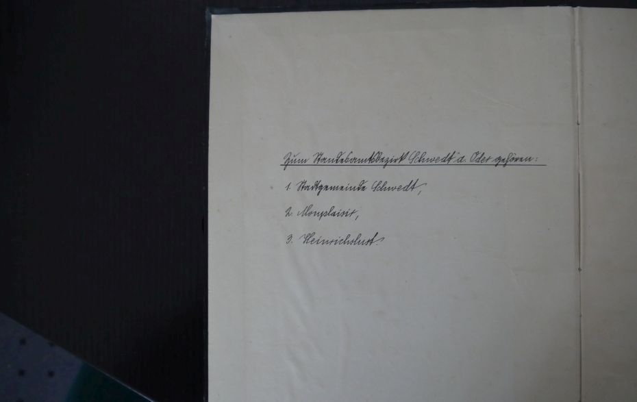 Zum Standesamtsbezirk Schwedt/Oder gehörten die Stadtgemeinde Schwedt, Monoplaisir und Heinrichslust.