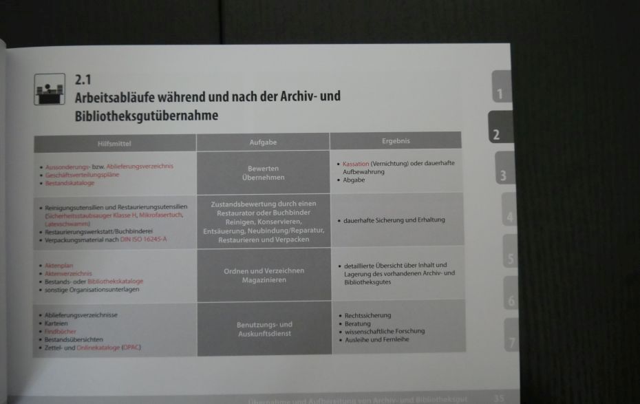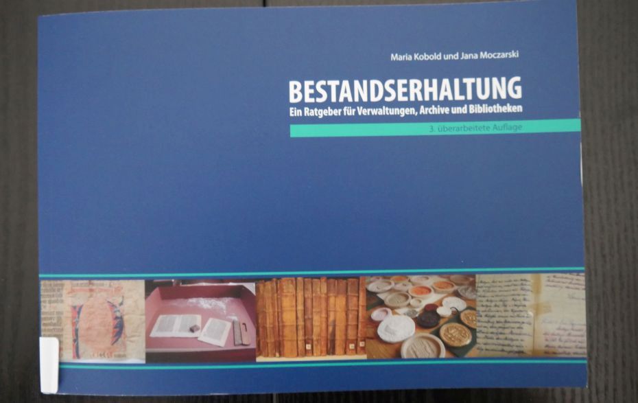 Tipp: Kobold, Maria und Moczarski, Jana: Bestandserhaltung: ein Ratgeber für Verwaltungen, Archive und Bibliotheken, 3., überarbeitete und erweiterte Auflage, Universitäts- und Landesbibliothek Darmstadt, Hessisches Landesarchiv (Corporate Creators) (2020), Darmstadt, ISBN 978-3-88443-058-3, DOI: 10.25534/tuprints-00011407
