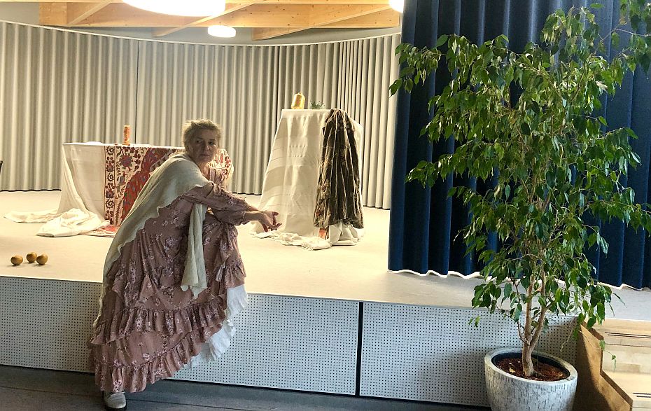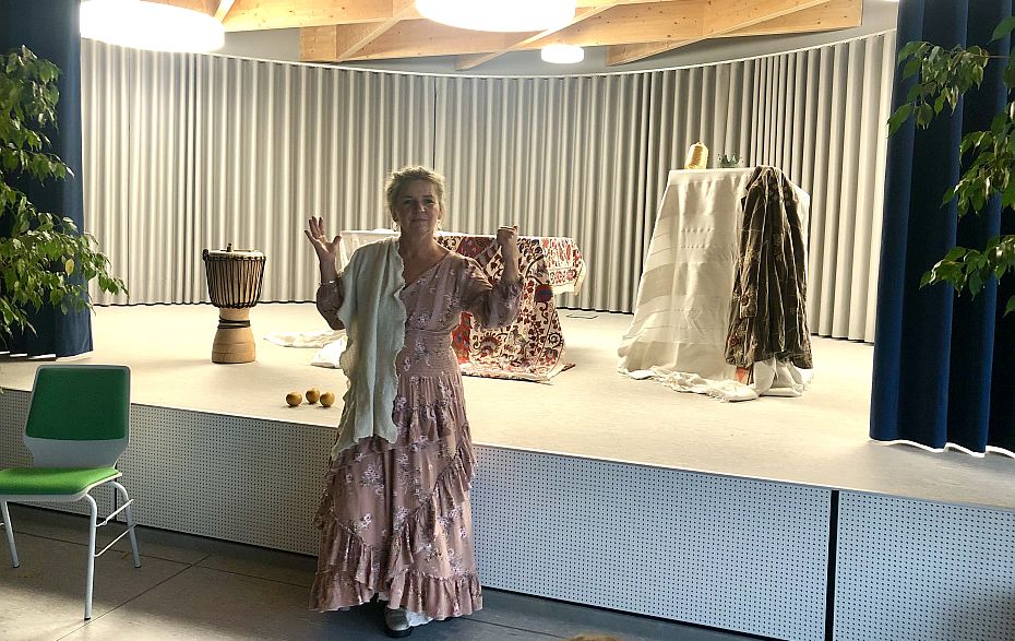 eine zauberhafte Märchenerzählerin – anlässlich der 32. Berliner Märchentage – in der Aula der Grundschule „Am Waldrand“.