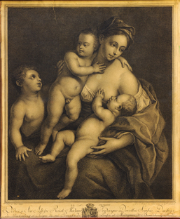 Er skizziert ein Porträt von Prinzessin Friederike Sophie Dorothee von Brandenburg-Schwedt, die durch Heirat zur Herzogin von Württemberg wurde.