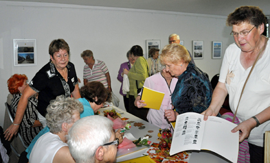 Zum Abschluss lief über einen kleinen Monitor der Film über Feste im Kindergarten „Sonnnenschein“, den die ehemalige Leiterin Frau Geißler zur Verfügung gestellt hatte. Die Besucher nutzten die Gelegenheit, sich von den Autorinnen Autogramme geben zu lassen.