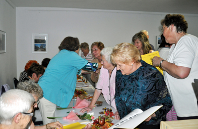 Mehr als 50 Zuhörer waren in das Frauenzentrum gekommen, um diese Präsentation der Arbeitsgruppe „Geschichte der Krippen und Kindergärten der Stadt Schwedt/Oder“ zu erleben. Der Anfang gestaltete sich aufgrund des totalen Technikausfalls etwas chaotisch. Doch jeder wusste, was er sagen wollte und so ging es einfach los. Den Auftakt machten Ingrid Nitzsche und Margitta Kühn, die Koordinatorinnen der zwei Bereiche Kindergarten und Krippe. Sie stellten das Werden und Entstehen der Broschüre vor. Frau Nitzsche dankte herzlich Helga Hohmann, Lieselotte Venus, Eva Brummund und Else Bettin, ohne die der lebendige Exkurs in die Anfänge der Kleinkinderbetreuung und Kleinkindererziehung in Schwedt nicht möglich gewesen wäre. Ein Dank galt auch Ortrun Dölling, die die Titelgrafik für dieses Heft angefertigt hatte. Margitta Kühn erzählte, wie sie von dem Projekt der Kindergartenleiterinnen erfuhr. Da war klar, die Krippengeschichte muss dabei sein. Ein besonderer Anreiz für alle Beteiligten war, dass es eine Broschüre geben sollte. Im Namen aller bedankte sie sich bei den Mitarbeiterinnen des Stadtarchivs, des Stadtmuseums und der Öffentlichkeitsarbeit der Stadt für die großartige Unterstützung.