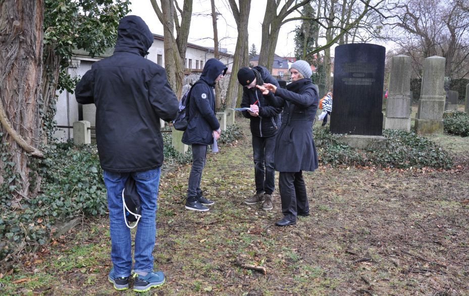 14. März 2018, Besuch des jüdischen Friedhofes Schwedt/Oder mit Schülern im Rahmen des Antirassismustages am Carl-Friedrich-Gauß-Gymnasium