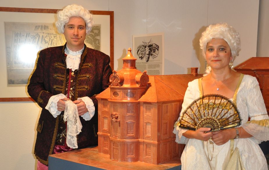 30. September 2018, Eröffnung der Sonderausstellung „Der schwer Regierbare. Friedrich Wilhelm (1700-1771. Prinz von Geblüt und Markgraf von Schwedt" mit Unterstützung des Museumsfördervereins. Die Erzieherin der Kinder des markgräflichen Paares Friedrich Wilhelm und Sophie, Hofdame von Zeunert (Sabine Hennig), und Hofrat von Behrend (Michael Witt), persönlicher Leibarzt des Markgrafen, reichten zur Eröffnung spécial de chroix.