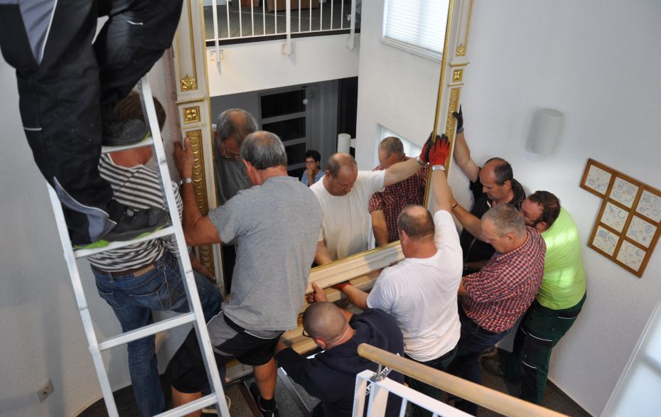 20. September 2018, Montage des historischen Spiegels im Treppenhaus des Stadtmuseums