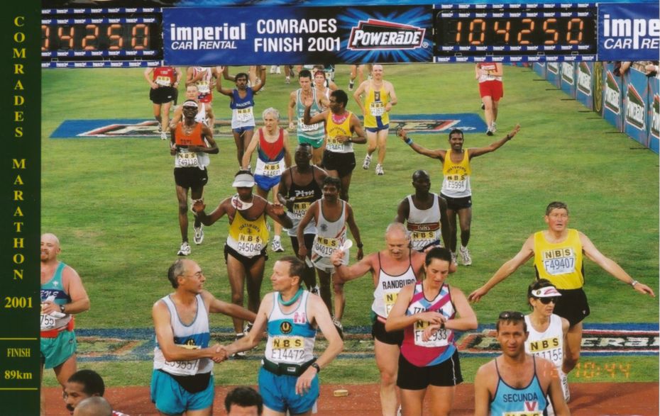 Zieleinlauf beim Comrades Marathon, 2001 (Foto: Manfred Lange)