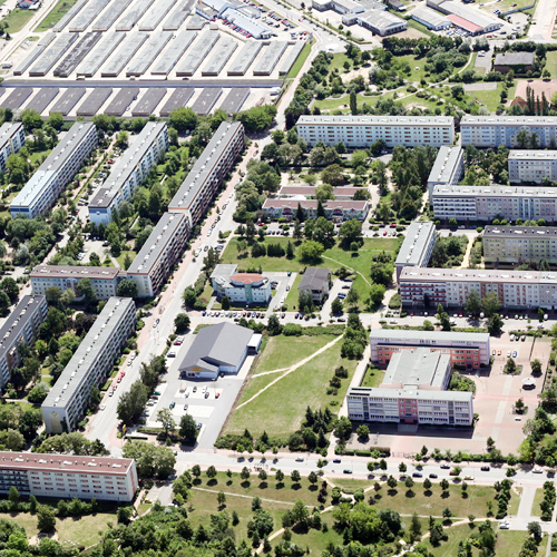 Die Straße zweigt von der „Bertha-von-Suttner-Straße“ ab und endet am Kreisverkehr an der „Ehm-Welk-Straße“.
