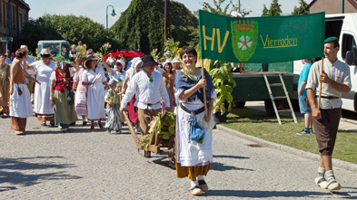 Gegen 12:30 Uhr findet ein großes gemeinsames Mittagessen der Festumzugsteilnehmer und der Gäste des Vierradener Tabakblütenfestes statt.