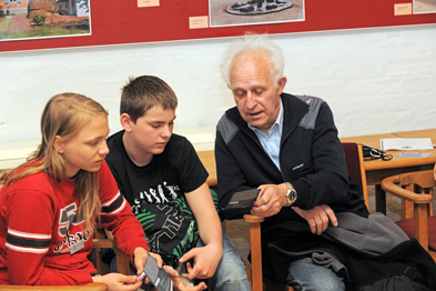 Diese Lebensgeschichte von realen Menschen und Nachbarn kennen zu lernen, war vor allem durch die ergreifenden Zeitzeugenberichte von Herrn Edgar Kiesling und Frau Rosemarie Rickmann (geb. Bettac) aus Vierraden möglich. Sie berichteten Schülern der Astrid Lindgren Grundschule von Ihrer Kindheit, von der Zerstörung Vierradens, aber auch vom Wiederaufbau dieser kleinen Tabakstadt.