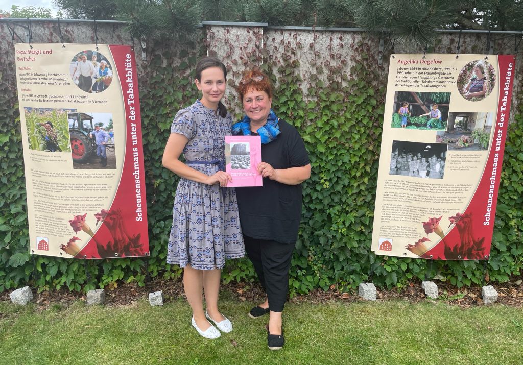 Das 27. Tabakblütenfest ist Geschichte. Der Heimatverein hat auf dem Markt in Vierraden unter der Tabakkrone den Holzschuhtanz vorgeführt, die Tabakkönigin hat wieder alle bezaubert und viele Autogrammkarten verschenkt. Das Team des Tabakmuseum hat die neuste Publikation zum ersten mal der Öffentlichkeit präsentiert und viele Besucher haben sich über das bunte Programm gefreut. In der Bildergalerie können Sie ein paar Eindrücke sehen.