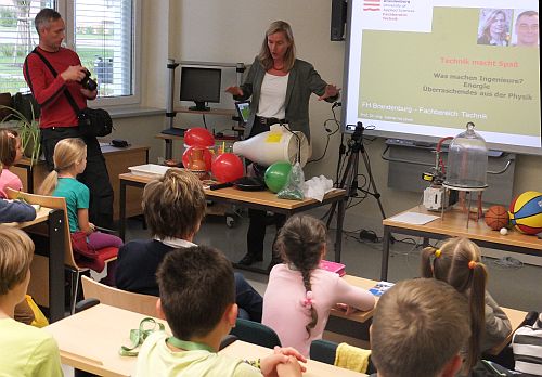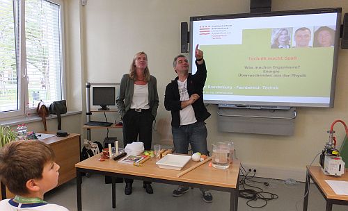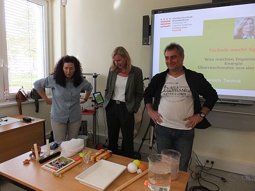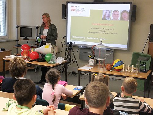 Die Dozenten Frau Prof. Löwe und Herr Dr. Pinno, aus dem Fachbereich Technik, sowie Frau Steinicke, kamen von der Fachhochschule Brandenburg. Um allen Schwedter Grundschulen eine Teilnahme zu ermöglichen, wurden zwei Vorlesung gehalten.