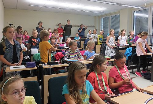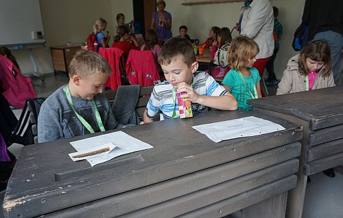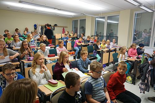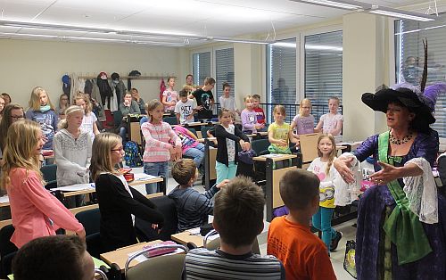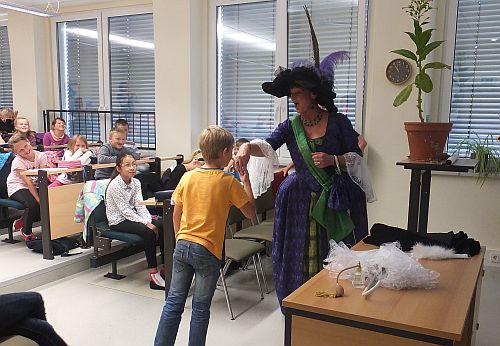 Die Schüler/innen durften sich auf eine lehrreiche Wanderung auf dem Zeitstrahl der Schwedter Stadtgeschichte freuen. Alle Kinder erhielten nach der Vorlesung ein Trinkpäckchen.