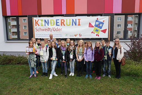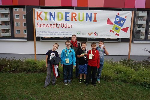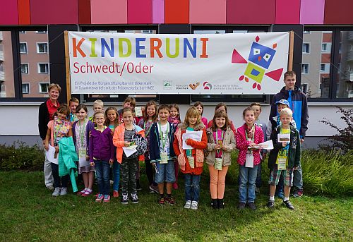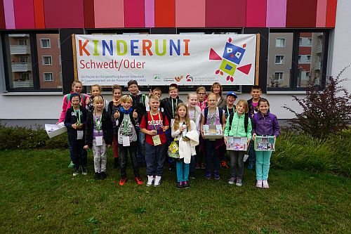 Die KinderUni ist ein Gemeinschaftsprojekt der Stabsstelle Wirtschaftsförderung der Stadt Schwedt/Oder, der Präsenzstelle Uckermark und der Bürgerstiftung Barnim Uckermark.