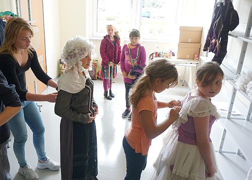 Verkleiden und Fotografieren vor dem Schwedter Schloss