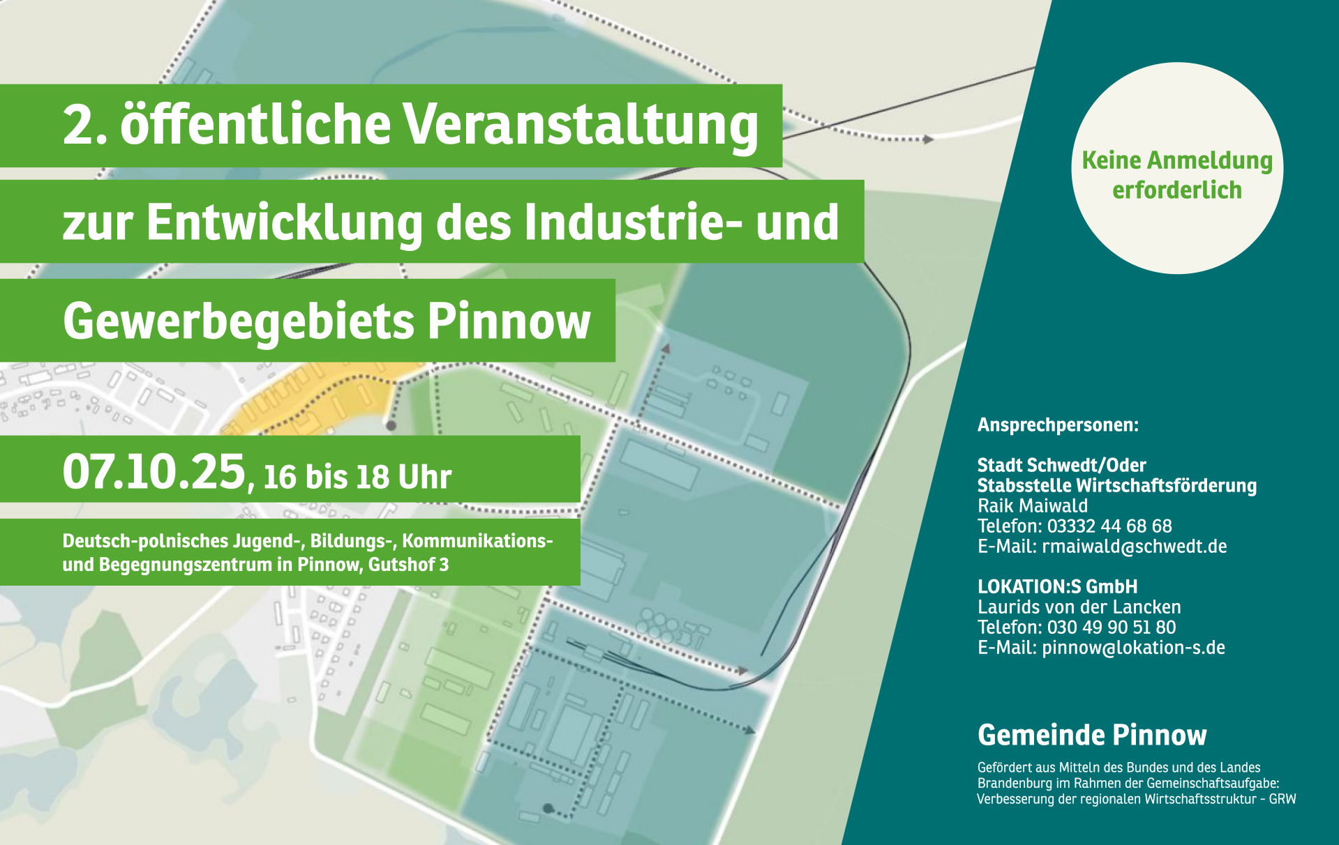 „Das Industrie- und Gewerbegebiet hat für Pinnow eine besondere Bedeutung. Wir stellen die Entwicklungsvorschläge und zentralen Ergebnisse der Machbarkeitsstudie daher ganz bewusst bereits vor dem Abschluss der Studie vor. Damit wollen wir die Bevölkerung, Unternehmen und lokale Akteure in Pinnow rechtzeitig informieren und eine weitere Möglichkeit zur Beteiligung bieten“, erklärt Philip Pozdorecz, Leiter der Stabsstelle Wirtschaftsförderung der Stadt Schwedt/Oder.