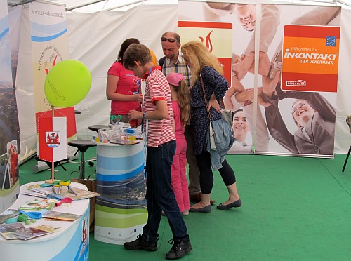 In einem voll ausgestatteten VIP-Zelt präsentierten sich die Projektpartner – die Handwerker- und Unternehmerkammer Gryfino und die Stadt Schwedt/Oder – mit ihren Partnern der Stadt Gryfino und der Unternehmervereinigung Uckermark e. V.