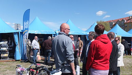 In einem voll ausgestatteten VIP-Zelt präsentierten sich die Projektpartner – die Handwerker- und Unternehmerkammer Gryfino und die Stadt Schwedt/Oder – mit ihren Partnern der Stadt Gryfino und der Unternehmervereinigung Uckermark e. V.