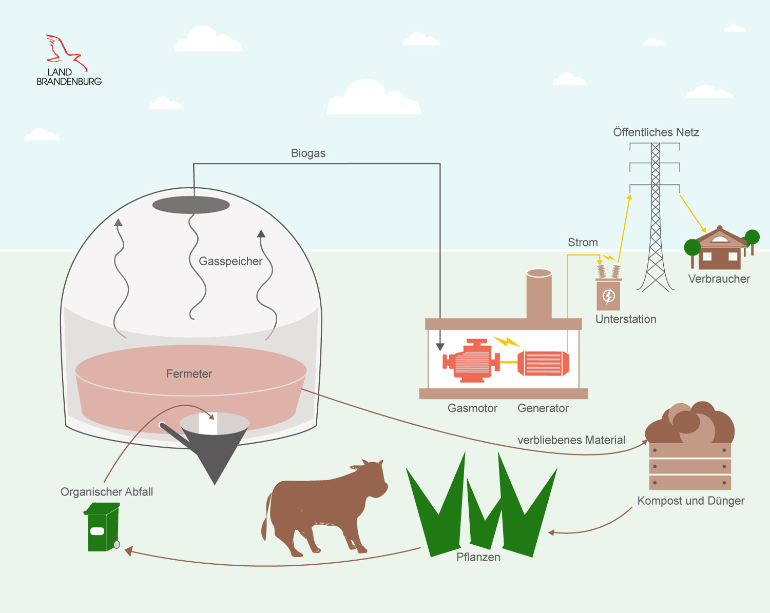 Die Bereitstellung von erneuerbarer Energie durch die Verwendung des erzeugten Biogases in Blockheizkraftwerken (BHKW) stand ursprünglich in Brandenburg im Vordergrund.