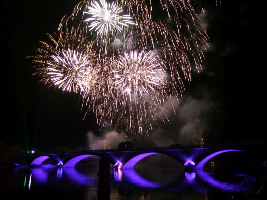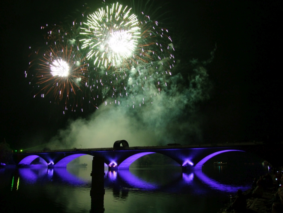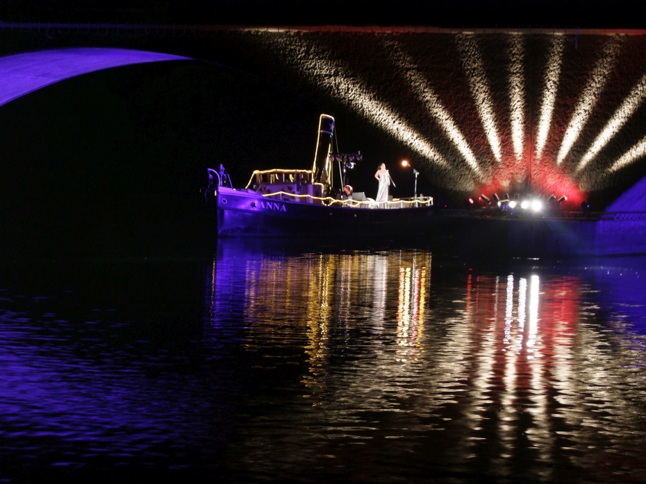 Highlight des Brandenburg-Tages 2010 in Schwedt/Oder war die festliche Abendgala am Bollwerk. Tausende Besucherinnen und Besucher verfolgten die spektakuläre Show auf der Stadtbrücke.