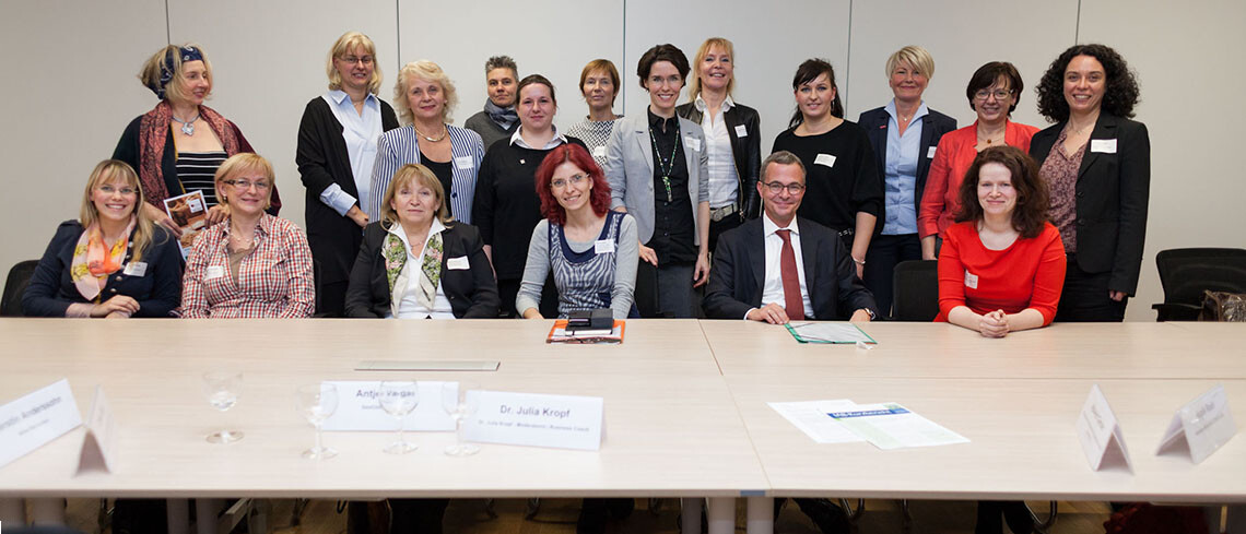 Zu Beginn des heutigen Gesprächsforums „Frauen in Führungspositionen“ besteht die Gelegenheit zu Auftaktfotos.