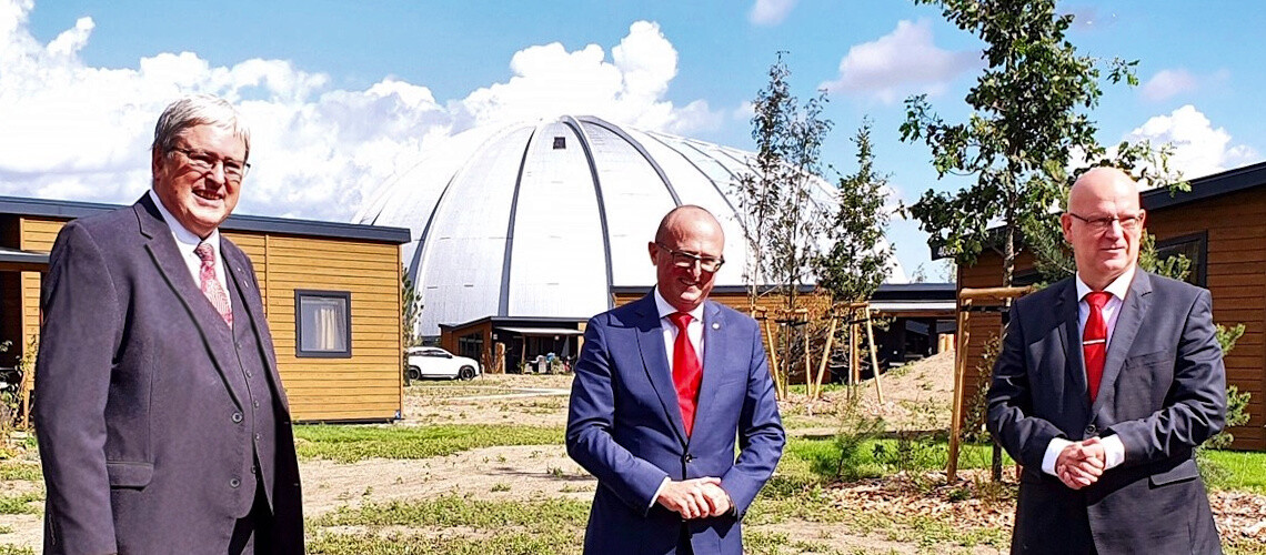 Tropical Islands hat in den vergangenen Monaten zu den bestehenden 119 Ferienhäusern und dem Campingplatz weitere 135 Ferienhäuser errichtet. Zudem wurden ein neues zentrales Rezeptionsgebäude und eine neue Energiezentrale mit einem Blockheizkraftwerk für das Resort gebaut. „Die neuen Bettenkapazitäten werden dazu beitragen, die Position von Tropical Islands als einem der attraktivsten Freizeit- und Ferienparks und eine der größten Beherbergungsstätten in Deutschland zu festigen“, sagte Steinbach. Mit der Erweiterung treffe Tropical Islands den Nerv der Zeit. „Ferienwohnungen sind aktuell so gefragt wie nie zuvor“, sagte Steinbach. Der Minister hob zudem hervor, dass die neuen „Sunrise Homes“ ebenso wie das übrige Resort über das neue Blockheizkraftwerk umweltfreundlich mit Energie versorgt würden.